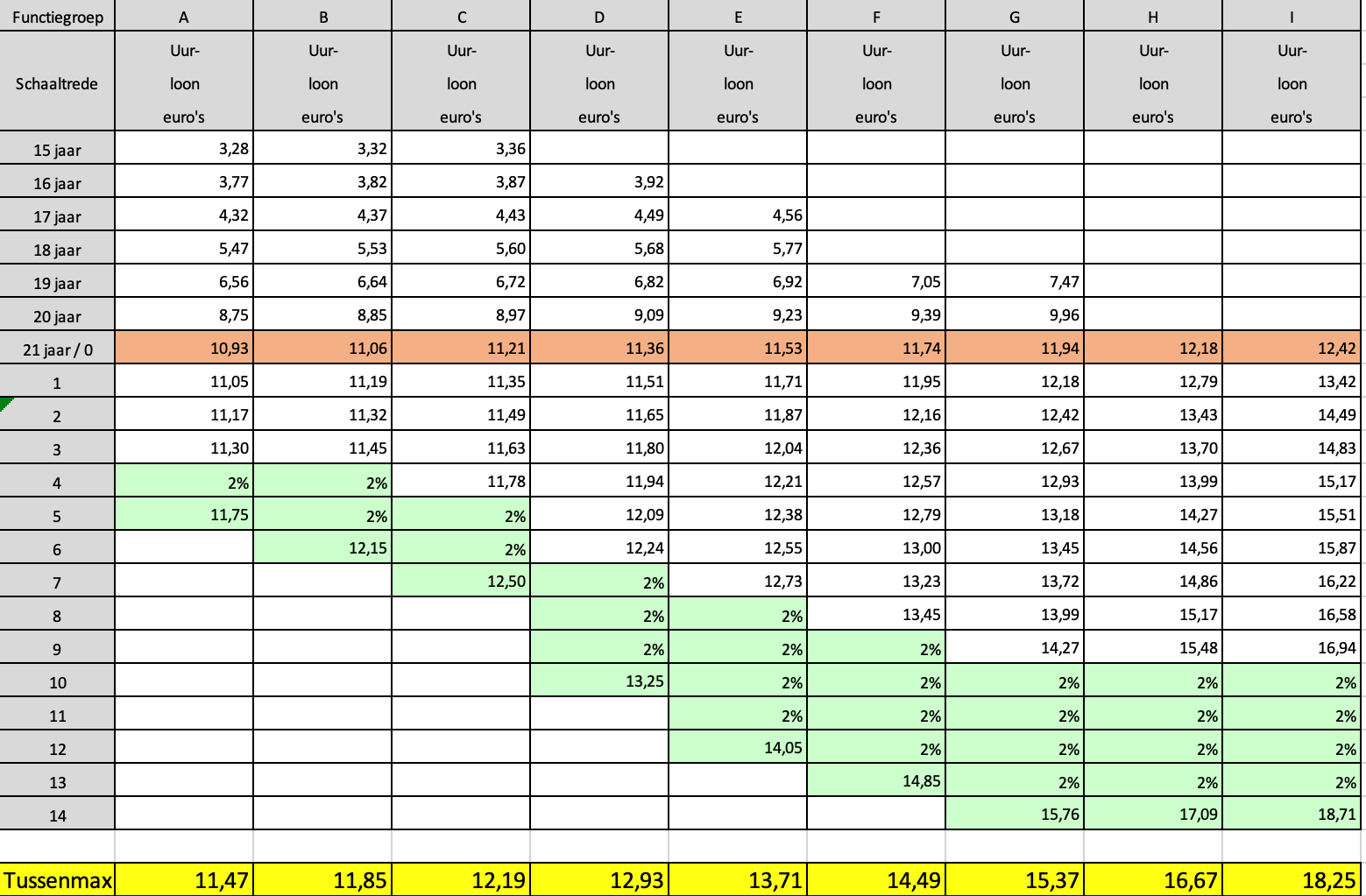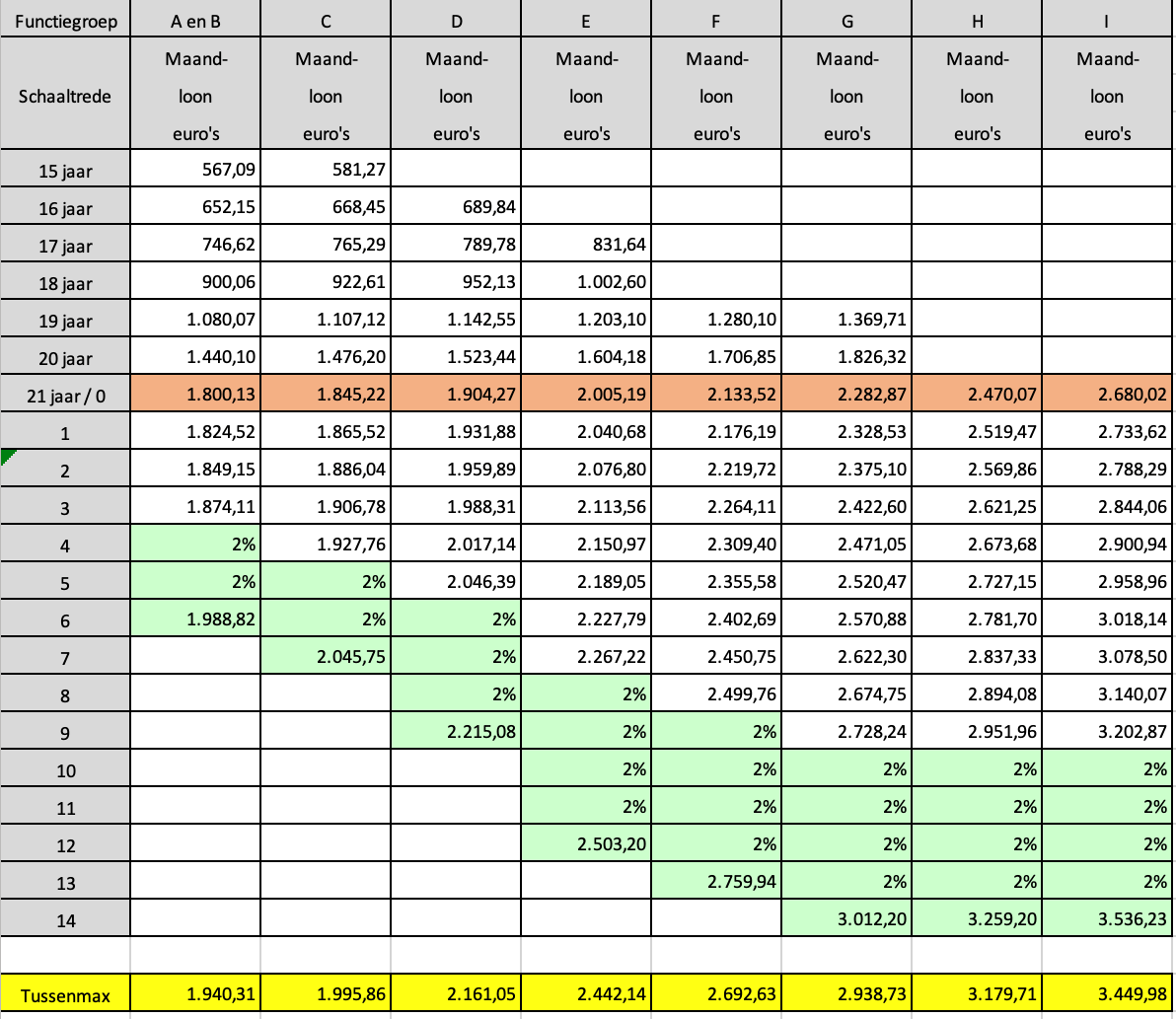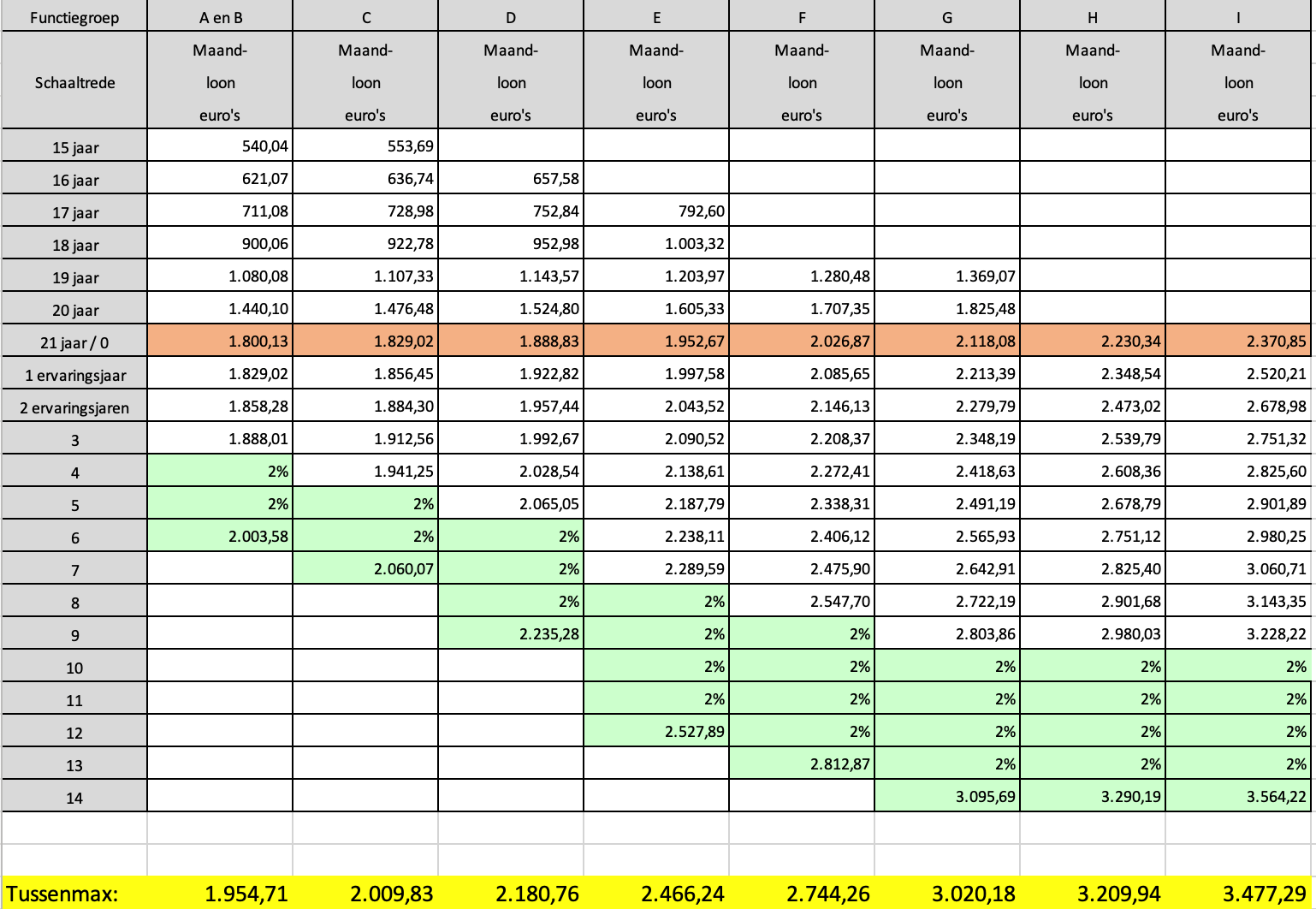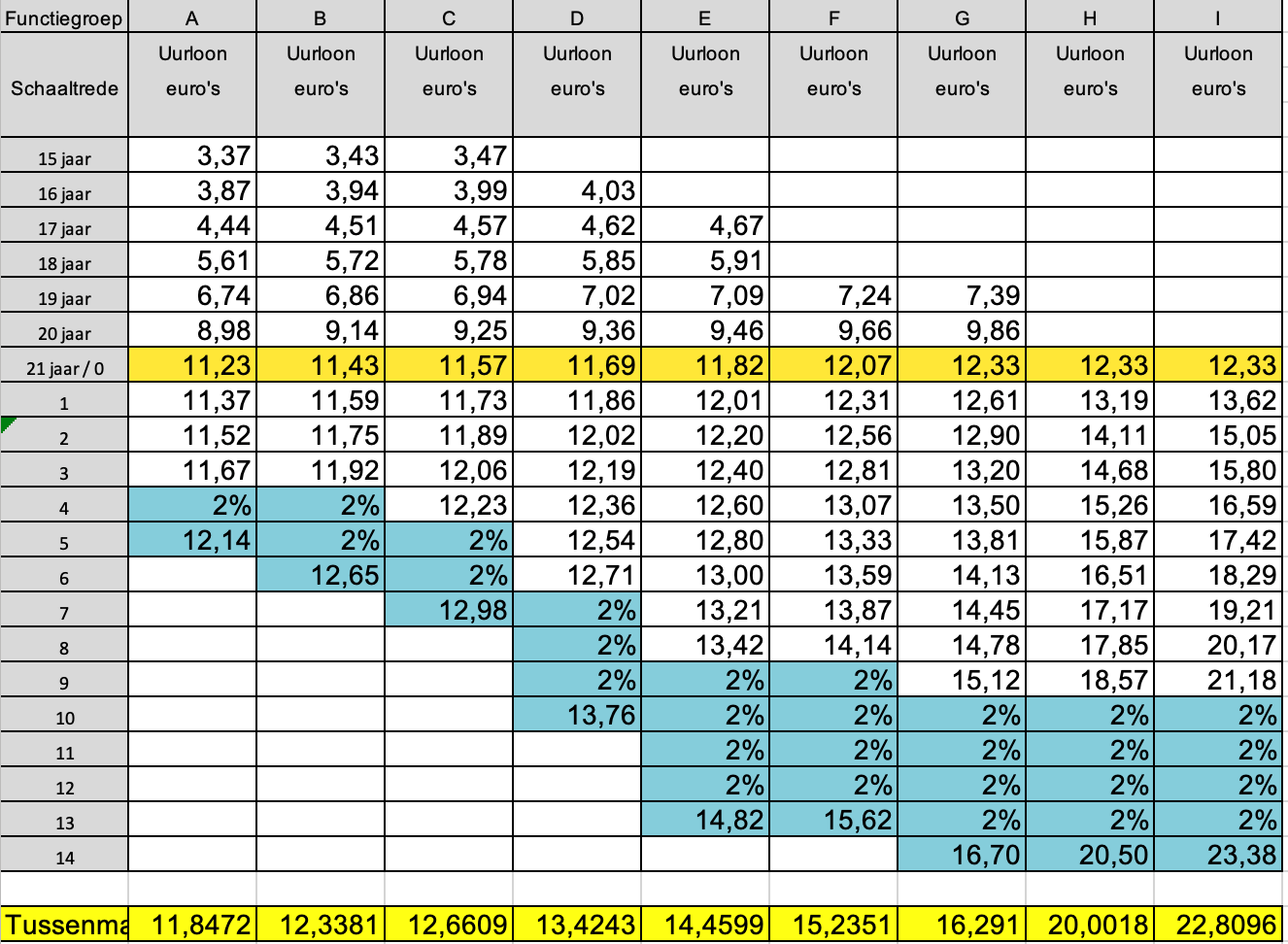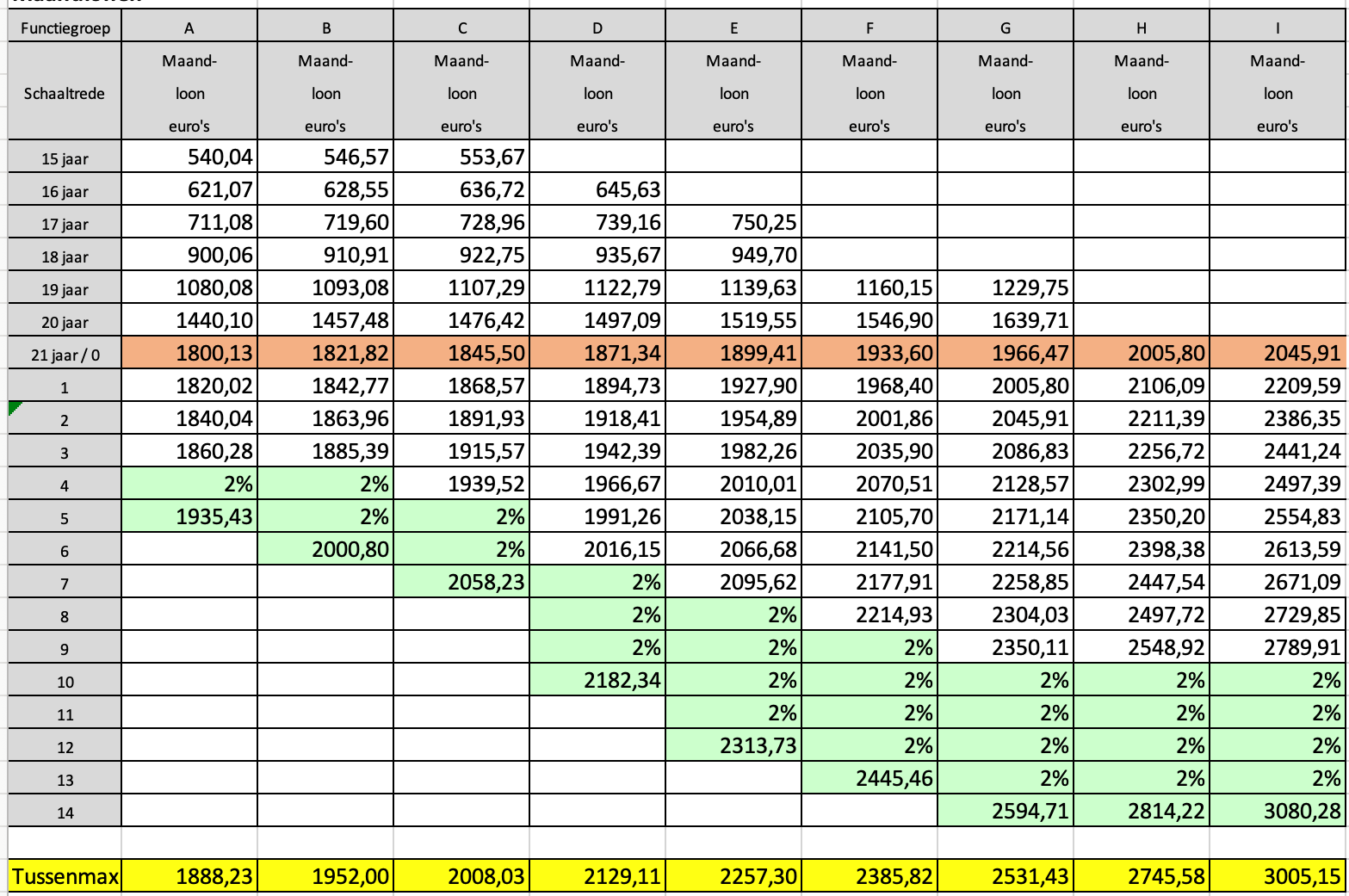 Afspraken cao Retail NonFood Werk in de Winkel , In de cao is afgesproken dat de schaallonen en de lonen van de medewerkers binnen de schalen met datzelfde percentage.