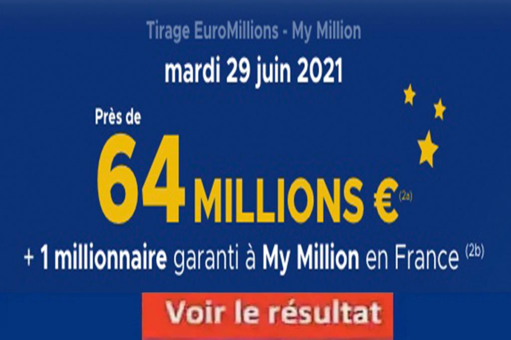FDJ 17 millions d'euros à remporter à l'Euromillions aujourd'hui , Les résultats euromillions du tirage de mardi 29 juin 2021 avec la répartition des gains et le code gagnant my million.